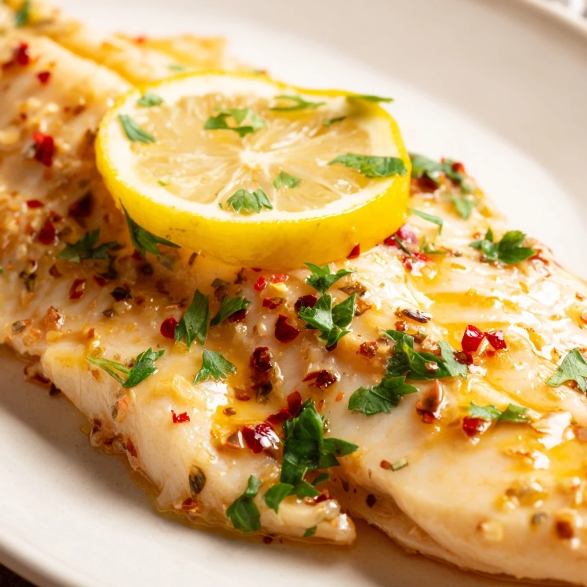 - Remove from the oven, scatter fresh parsley and lemon slices over top, and serve immediately while the butter is still warm and the fish is at its best.