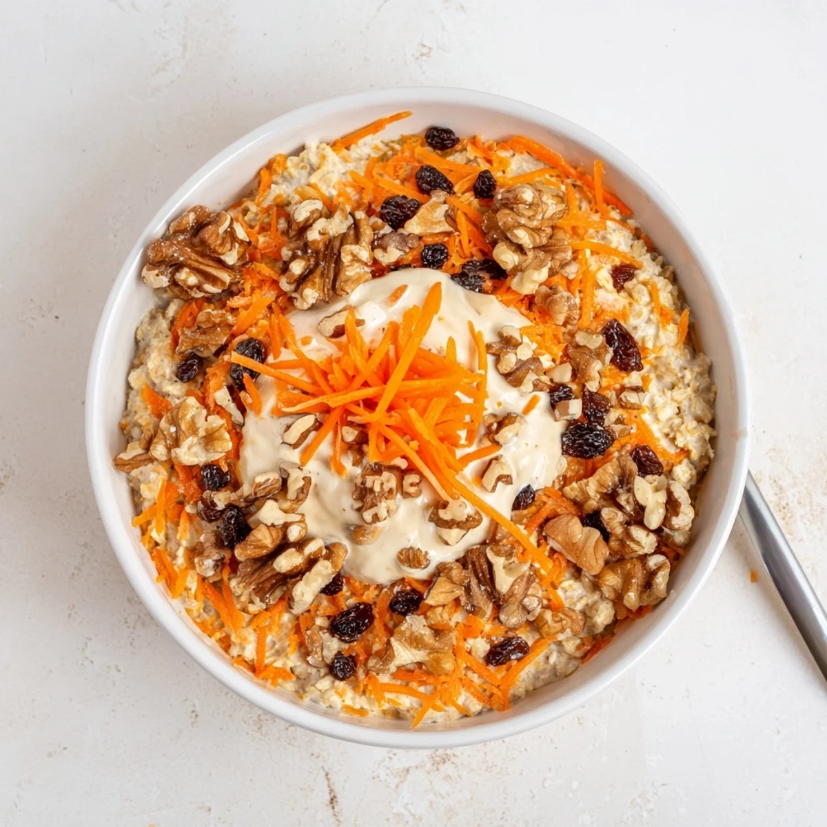 Wake up to a bowl of creamy, spiced oats that captures all the comforting flavors of classic carrot cake. These overnight oats soak up milk and yogurt while you sleep, creating a luscious texture reminiscent of the beloved dessert.