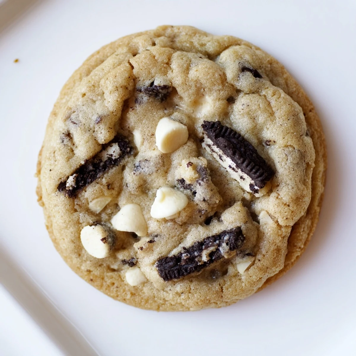 I stood in my kitchen at midnight, craving something ridiculous after a long week, and crushed an entire row of sandwich cookies into a mixing bowl. My roommate wandered in, gave me a look that said "another experiment," then quietly handed me the white chocolate chips from the pantry. Those first batches came out slightly different every time—sometimes too flat, sometimes underbaked—but eventually I found the sweet spot between chewy center and crispy edge that makes these disappear from parties within minutes.