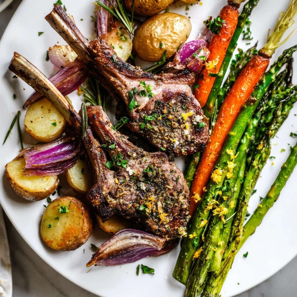 Last year my aunt leaned over the serving platter and whispered, Did you really make this? The lamb came out perfectly medium rare with this beautiful crust, and the vegetables had soaked up all those rosemary and garlic flavors. My cousin who usually wont eat anything green went back for thirds of the asparagus, which might be the biggest win Ive ever had as a home cook.