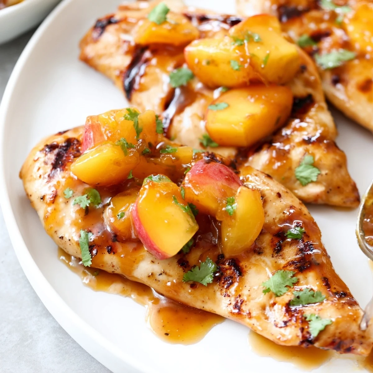 - Nestle the chicken back into the skillet and spoon that gorgeous sauce over the top. Transfer everything to the oven and bake for 15-18 minutes until the chicken reaches 165°F internally. Let it rest for 2-3 minutes before serving with extra sauce, fresh peach slices, and scattered herbs on top.