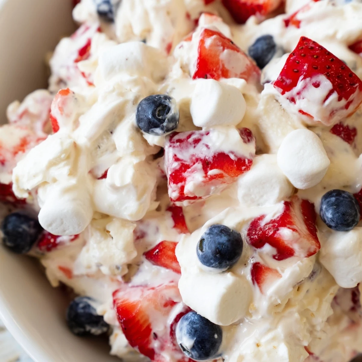 Last Fourth of July, my aunt brought this patriotic cheesecake salad to our backyard potluck. Between the sparklers and my cousin trying to man the grill for the first time, this bowl disappeared faster than anything else on the table. Now I make it for every summer gathering, and people still ask for the recipe before they've even finished their first serving.